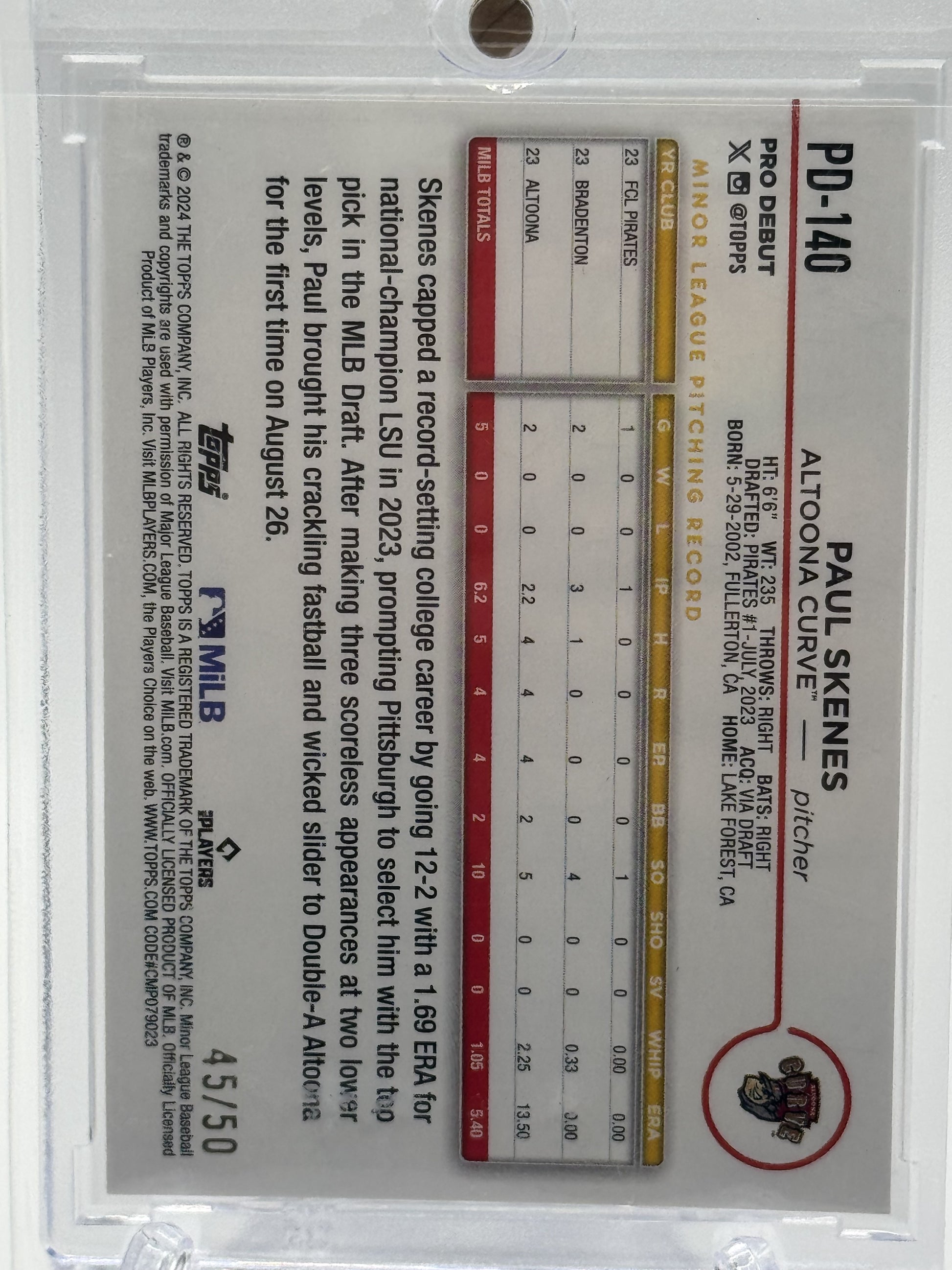 2024 Topps Pro Debut #PD-140 Paul Skenes Gold Foil # 45/50